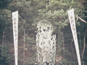 七宝竜寺へは車で行きました。細い山道を車で登り、道路脇に車を止めて、200段余りの階段を降りて行きます。 階段を降りて行くと、大きな身代わり不動尊が出迎えてくれます。 境内は初詣客でごった返しており、あめゆがふるまわれていました。本堂では、ゆっくりとお参りすることもできませんでした。いつか機会があれば、ゆっくりとお参りさせて頂きたいと思います。 |